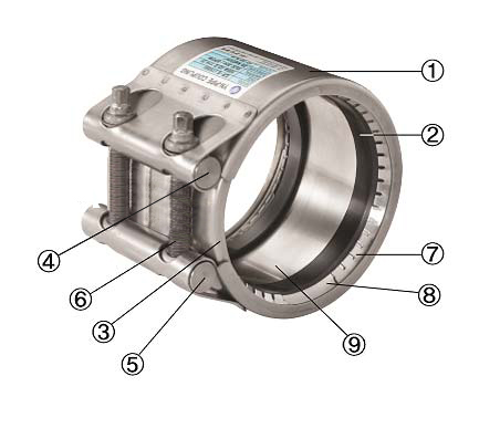 | ② | Rubber | EPDM | Water, air, powder, transfer tube, etc. (-30℃ ~ +90℃) |